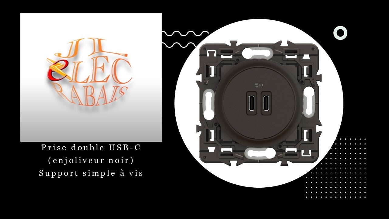 Prise double USB-C (enjoliveur noir) - support simple à vis