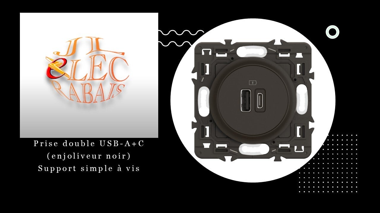 Prise double USB-A+C (enjoliveur noir) - support simple à vis